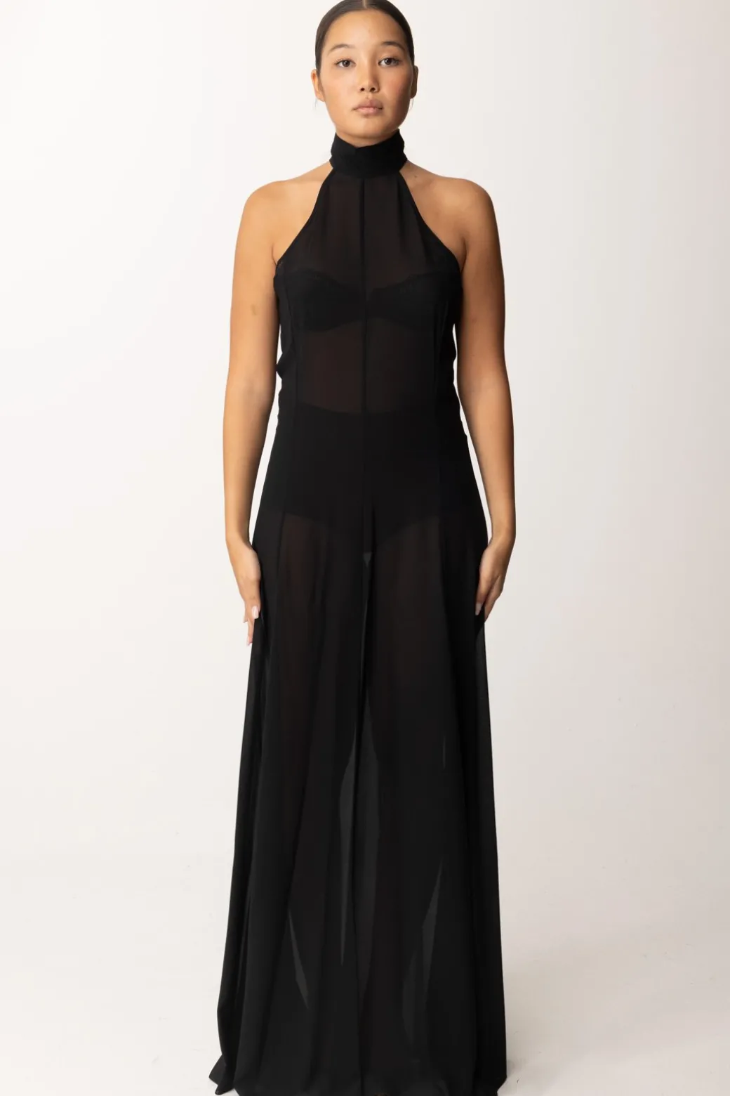 Sensuale e misterioso, questo abito Patrizia Pepe lungo con collo alto è perfetto per chi ama fare una dichiarazione di stile audace. L’effetto vedo-non-vedo crea un gioco di trasparenze che valorizza le forme senza essere troppo vistoso. Indossalo con accessori dinamici per completare un look impeccabile.