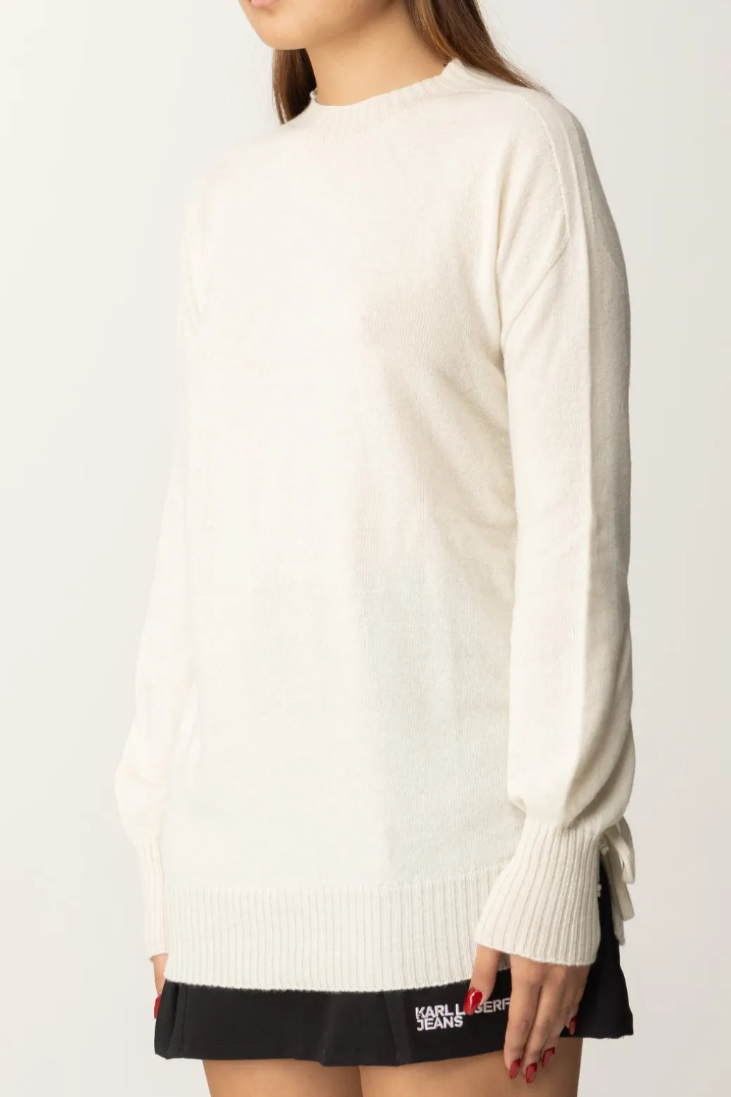 Maglione Twinset comodo e minimal, ideale per giornate di relax da affrontare con uno stile cozy. Abbinalo a una mini-skirt per un contrasto trendy o pantaloni a sigaretta per un effetto più casual-chic.