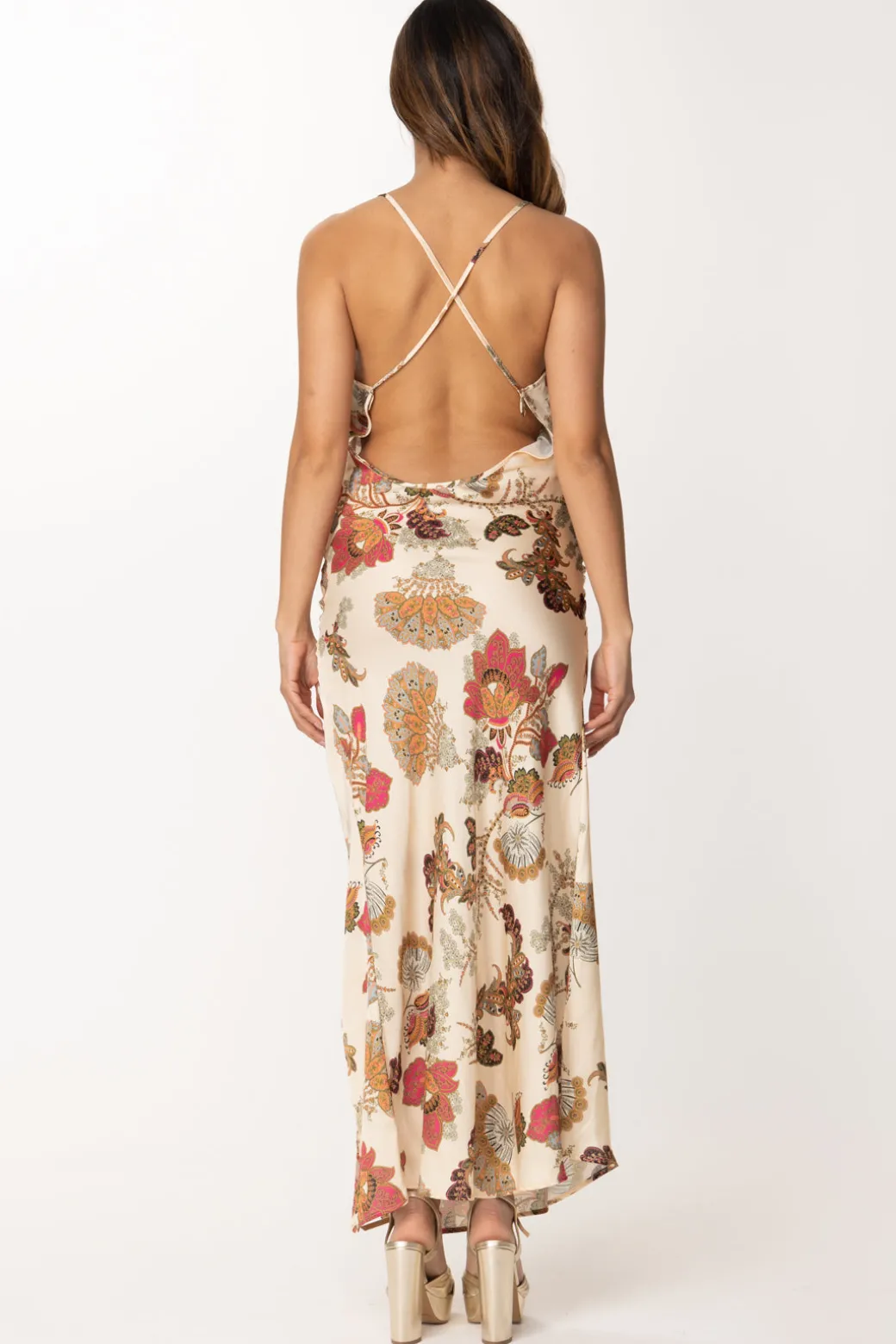 Abito Gaelle fresco ed elegante, interamente realizzato in satin, con un design che cade morbido e delicato sulla silhouette e viene abbellito da una colorata stampa floreale e un sensuale spacco laterale, perfetto per il mood estivo.